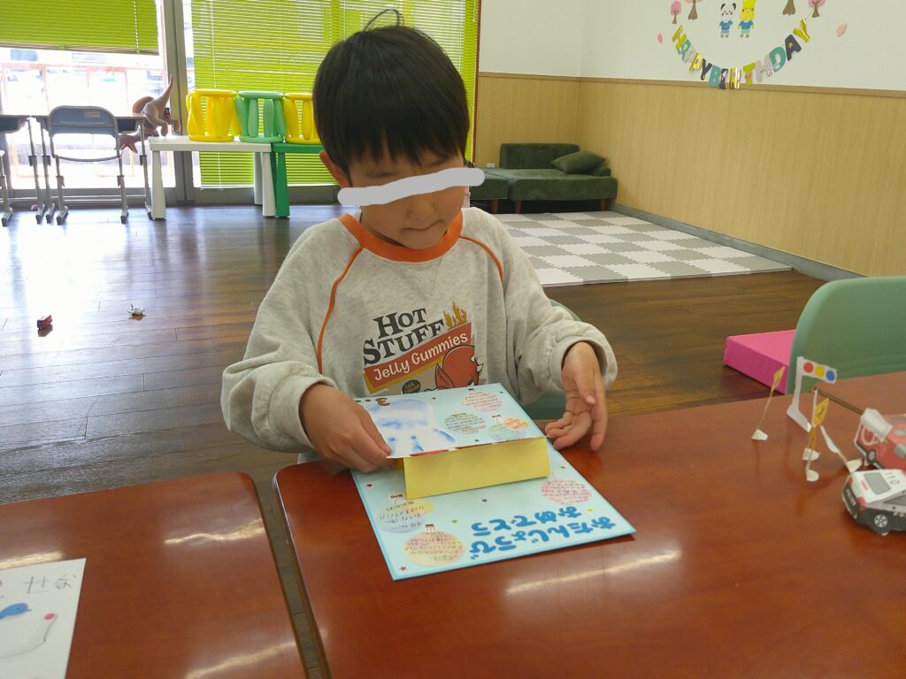 おたんじょうびおめでとう♪ 2026年3月18日 こんにちは! 先日来たお友達~🎶 まずはいつものプリント学習!!! 曲線の線つなぎとっても上手にできましたね(^^)/ そのあとはクラフトペーパーでトミカ!!! すばらしい✨ たくさん作れました!!! そして最後は・・・ おたんじょうびおめでとう💗 バースデーカードとても喜んでくれました💛 これからもいつもにこにこで周りを笑顔にしていってくださいね⭐