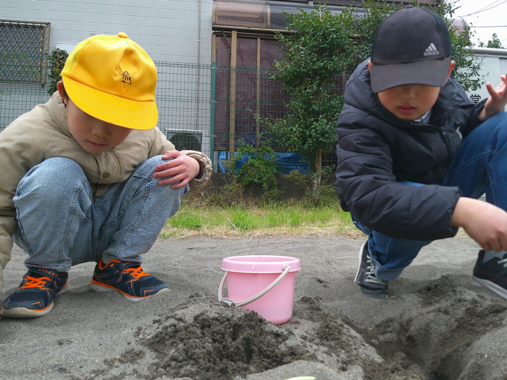 二人で協力をしてとっても深い穴を掘りました!すごい✨